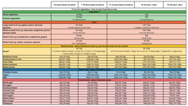These were developed by looking at how the different food groups can be put together to provide all the energy and nutrients that children of different ages need. If you would like to weigh out some portion sizes for your children, you can use these as a guide. It’s not necessary to follow each portion exactly, but the portion size and range provided are a guide for appropriate portions at different ages.